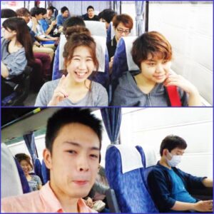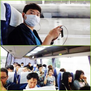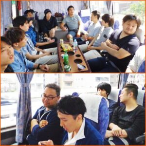 普段の出社時間より集合時間が早かったので、みんな寝ちゃうかと思いきや、