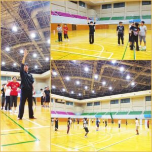とっても広い体育館だったので、スペースを広く使ってのラジオ体操。