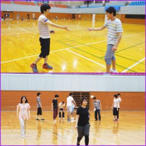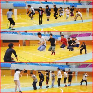回す人とジャンピングメンバーの、息合わせが大切になってくる “大長なわ跳び”。